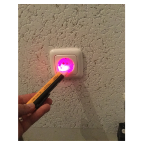 Бесконтактный тестер напряжения. С помощью данного тестера вы быстро и легко можете проверить наличие проводов под напряжением, а также разрыва кабелей. Прибор оснащен визуальной и звуковой сигнализацией, а также светодиодным фонариком для работы в условиях с недостаточным освещением.