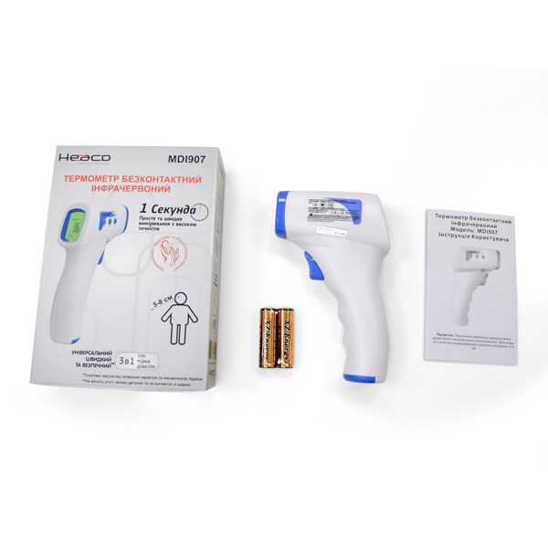 Бесконтактный термометр Heaco MDI 907 разработан специально для всей семьи. Может измерять не только температуру тела, но и температуру окружающей среды, а также предметов всего за одну секунду на расстоянии от 1-го до 10 см. Универсальный - подходит для детей и взрослых. Прибор может использоваться как в домашних условиях, так и больницами в клинических условиях. С его помощью можно быстро и легко определить температуру телачеловека, температуру жидкости (например, детского питания или ванночки), температуру еды и любых предметов. Большой дисплей за секунду покажет результат измерения, цветовое оповещение подскажет завышенную температуру (красный — высокая, зеленый — в нормальном диапазоне). Благодаря звуковому сигналу пользователь узнает об окончании процесса измерения. Товар сертифицирован в Украине в соответствии с требованиями технического регламента о медицинских изделиях.