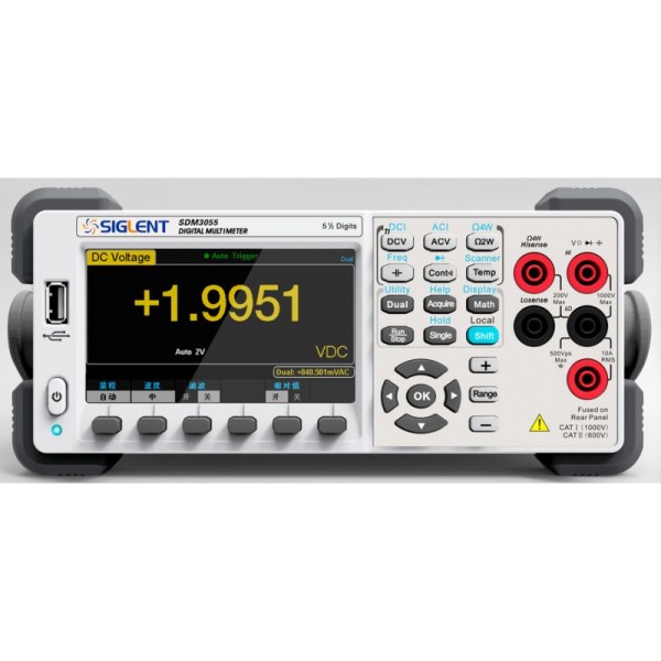 Siglent SDM3055 — 5 ½ цифровой мультиметр с двумя дисплеями,который сочетает в себе множество математических и статических функций. Онвключает в себя различные коммуникационные интерфейсы с простой настройкой,оснащен 4,3-дюймовым TFT ЖК дисплеем, и разработан для пользователей, которымнеобходима высокая производительность, множество функций и автоматическиеизмерения. Siglent SDM3055 — многофункциональный настольный мультиметр.