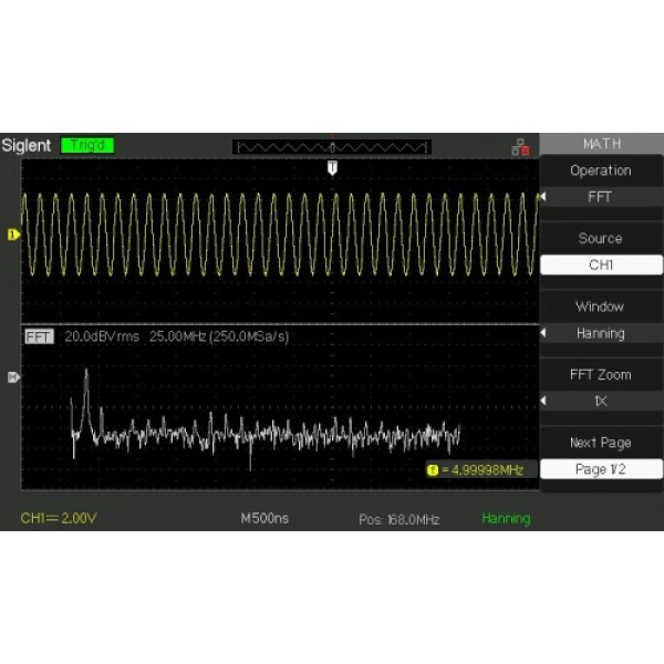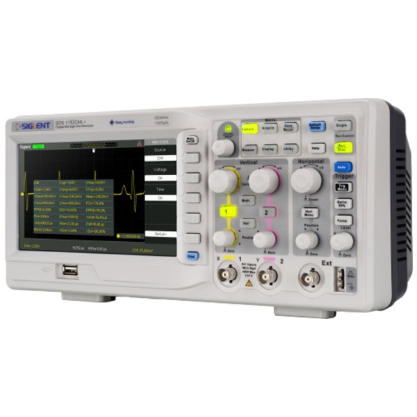 Цифровой осциллографSIGLENT SDS1052DL+ – компактный настольный двухканальный цифровой осциллограф с полосой пропускания 50 МГц. 7-дюймовый цветной ЖК дисплей осциллографа обеспечивает яркое и четкое отображение осциллограмм, а кнопки с подсветкой обеспечивают удобство пользования. SIGLENT SDS1052DL+ обладает многоязычным интерфейсом и онлайн помощью.