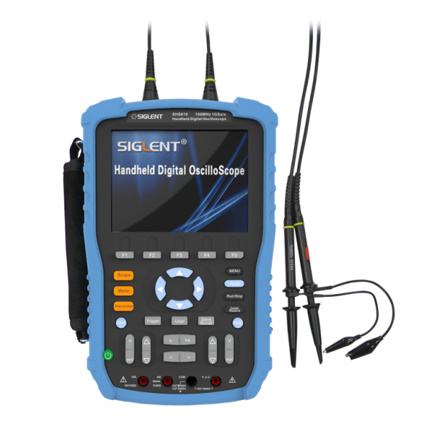 SIGLENT SHS810 – этодвухканальный портативный осциллограф серии SHS800, с полосой пропускания 100МГц, частотой семплирования 1 Гвыб/с и глубиной памяти 2 MБ. Портативный осциллограф SIGLENT SHS810 также выполняет функции мультиметра, измеряя постоянное/переменное напряжение и ток, сопротивления, емкость, а также выполняет тестирование диодов и прозвонку.