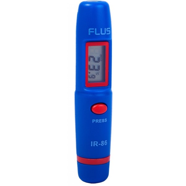 Мини карманный пирометр FLUS IR-86 - в виде ручки, дистанционный измеритель низкой температуры до 260°С - начального уровня для дома, обучения, и несложных зада, тем не менее способен мгновенно уловить приемной линзой инфракрасное излучение с небольшого расстояния и отобразить результат на небольшом экранчике.