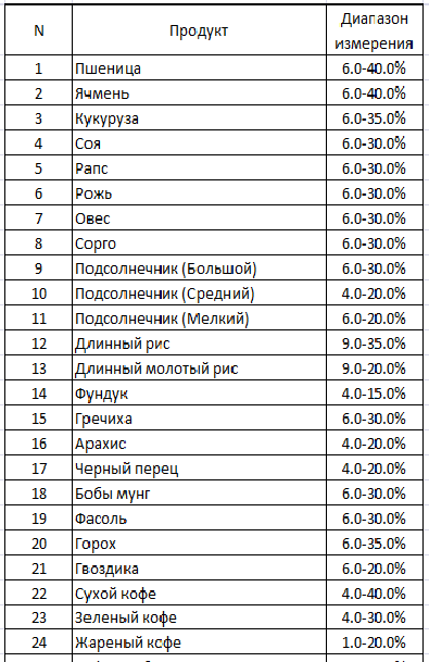 Диапазон влажности в зависимости от культуры 6~30 (40)%