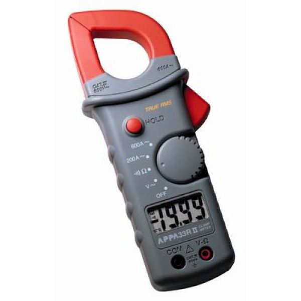 Электроизмерительные клещи АРРА-33II выпускаются вместо клещей АРРА-33 и имеют улучшенные технические характеристики, более современную эргономику и более низкую цену. Конструкция губок со смещенной симметрией позволяет производить подключение к цепи в ограниченном пространстве электрического шкафа или другом месте нахождения электрического провода. Клещи предназначены для измерения параметров сети переменного напряжения - переменного тока, переменного напряжения и сопротивления постоянному току. Одной из особенностей данной модели электроизмерительных клещей является режим удержания результатов измерения.