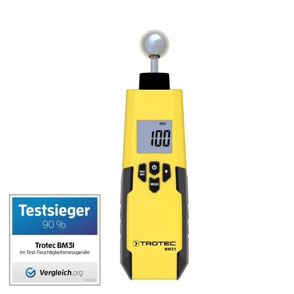 КОМПЛЕКТ ПОСТАВКИ 1 х влагомер Trotec BM31; 1 х батарейка 9V; 1 х инструкция по эксплуатации.