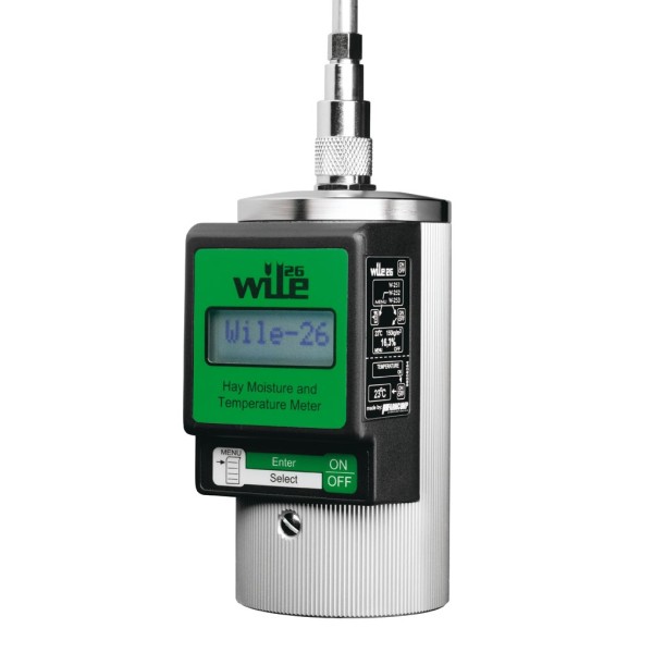 Вологомір Wile 26 призначений для вимірювання вологості сіна, сінажу та силосу. У комплекті з додатковим датчиком температури Wile 651 може використовуватися також для вимірювання температури кормів.